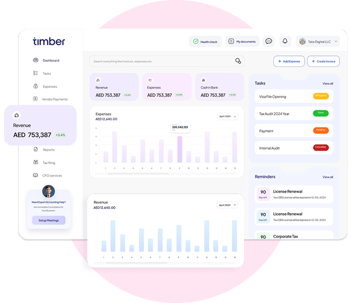 From bookkeeping services to VAT registration and corporate tax filing, Timber handles your UAE accounting so you can focus on growing your business.